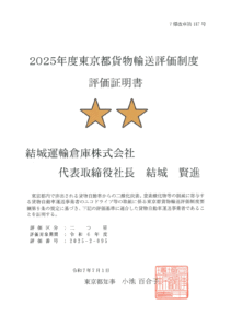 2025年度東京都貨物輸送評価制度評価証明書(二つ星)
